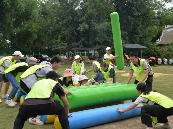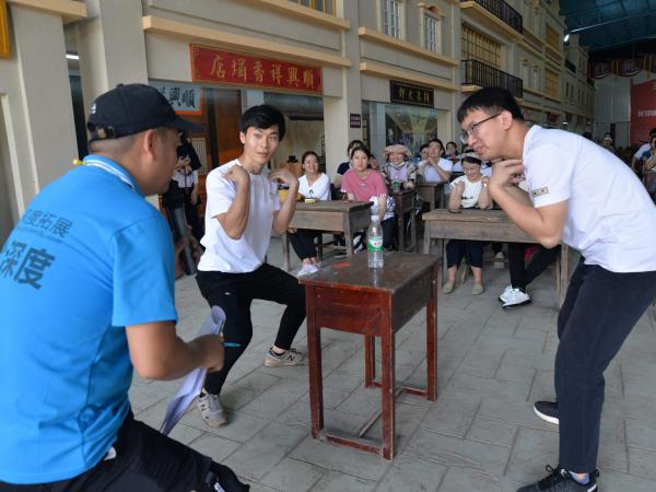 素质拓展训练设置了“团队形象展示”“合力筑塔”“不倒森林”“车轮滚滚”等比拼项目。在“团队形象展示”项目中,4个参赛队给自己起队名、画队旗、列队形,同时喊出响亮的队伍口号。在“合力筑塔”“不倒森林”“车轮滚滚”项目中,参赛队员相互配合、克服困难,按照比赛规则迅速完成规定动作。充分展现了青年团员顽强拼搏、积极向上的精神风貌。