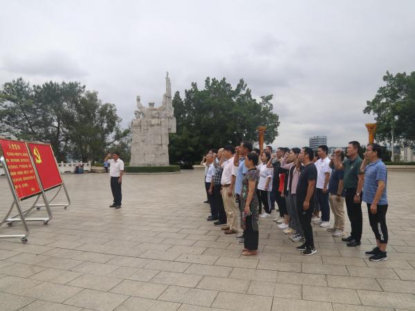 在革命先烈纪念碑前,全体人员向烈士忠魂敬献花圈,向革命先烈三鞠躬。面对鲜艳的中国共产党党旗,党委书记池昭锦同志领誓,与党员同志们共同重温入党誓词,表达对革命先烈的深深怀念和敬仰之情。