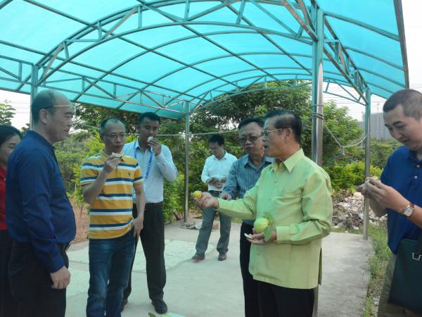 宋沙瓦·凌萨瓦一行参观了广西热作所科技成果展厅,初步了解了广西热作所在木薯、澳洲坚果、芒果、甘蔗、剑麻等热带、亚热带作物种质资源收集保存与创新利用、良种选育、丰产栽培、环境与植物保护、贮藏保鲜、农产品加工技术及中试示范、农产品质量安全检测与风险评估、生物技术、科普教育等方面研究成果。实地考察了国家科技部木薯国际科技合作基地、国家番石榴种质资源圃、澳洲坚果种质资源圃、都市生态茶园等多个科研基地。