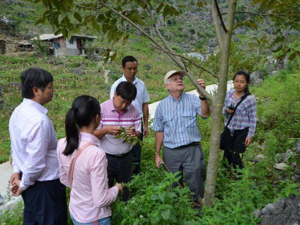 通过5天的考察,David 教授对河池市当地丰富的核桃种质资源感到震惊,看到在石漠化山区生长良好、单株干果最高产量达到100公斤的果树时非常惊讶,David教授对河池市政府大力发展核桃产业表示赞赏,认为这是当地群众脱贫致富的好树种。同时David教授也对当地的核桃种苗繁育、病虫害综合防治、采后加工以及质量管理等方面提出了宝贵的意见,还提出了下一步的合作意向。