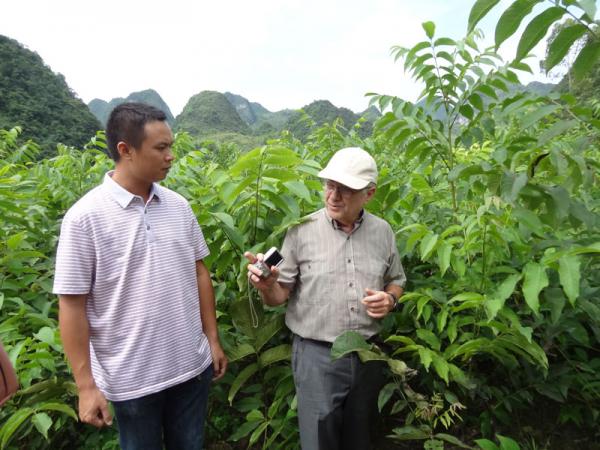 2013年9月2日至6日期间,我所科技人员陪同澳大利亚核桃专家David 教授赴河池市凤山县、天峨县、南丹县、金城江区、都安县等区县考察当地的核桃种植基地、种苗繁育基地以及优良单株等,David教授是首位考察当地核桃产业发展状况的外国专家,受到了当地政府及核桃种植户的热烈欢迎。