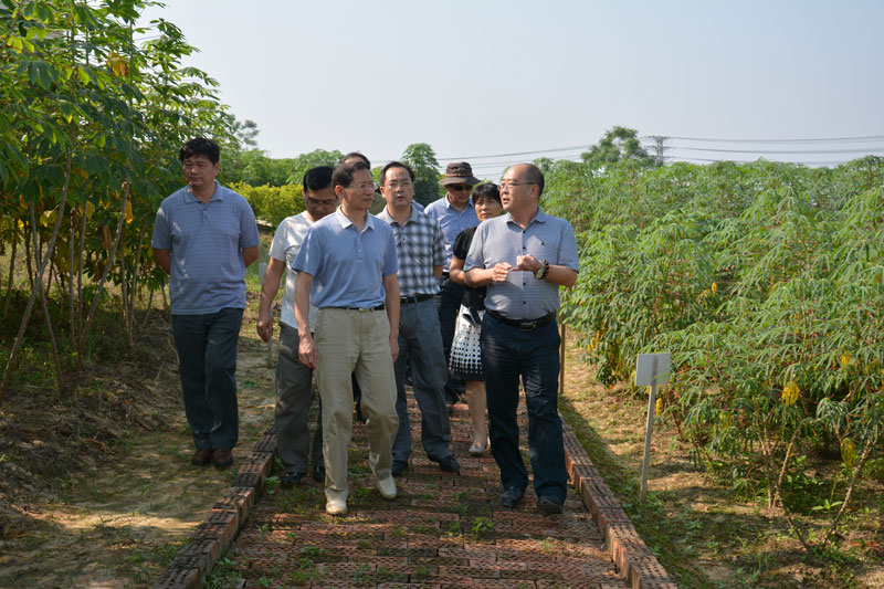 农业部农垦局副局长胡建锋(前排左一)到木薯种质资源圃参观