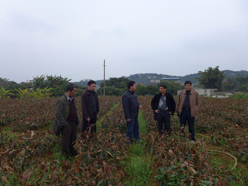 2014年3月5日,芒果研究中心主任黄国弟带领技术干部3人和广西芒果创新团队驻邕岗站的部分成员一起到武鸣县双桥镇合美村及东盟华侨投资区农科所进行芒果寒害调查。