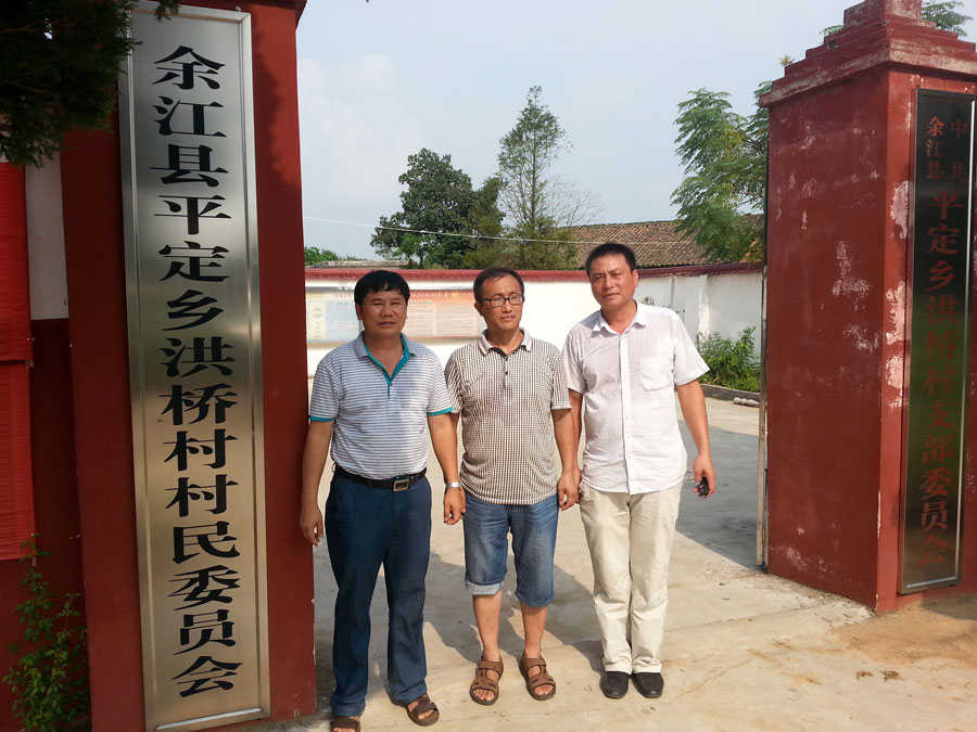 在江西调研第一站是余江县,在余江县平定乡洪桥村,当年血吸虫肆虐的重灾区,如今变成了我国木薯北移种植的试验示范基地。椐该村村支书鲁书记介绍,该村今年大面积引种木薯,全村木薯种植面积达到一千多亩,其中一半以上面积种植我所选育的木薯品种桂热4号。在村支书鲁书记陪同下,李军仔细察看了当地村民引种的桂热4号生长情况,发现长势良好,而且没有病虫害。李军向当地村民详细介绍了木薯品种4号的栽培要点,希望当地村民发扬余江人民战天斗地、敢为人先与血吸虫争斗的光荣传统,把木薯种好管好,树立起我国木薯北移种植的典范基地。