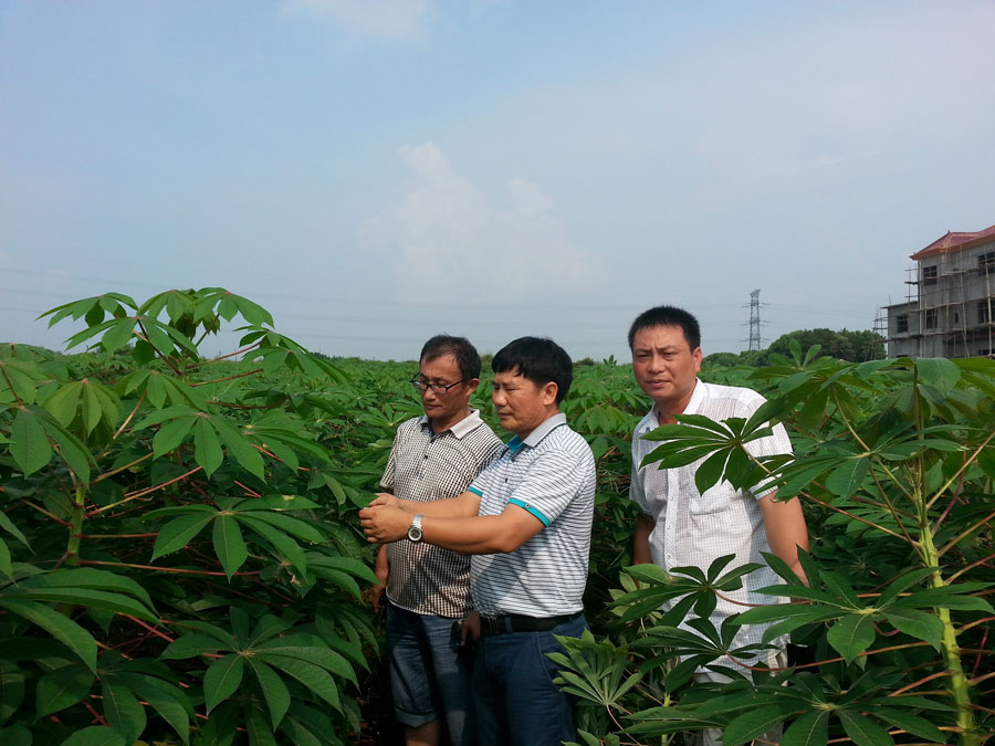2014年8月2-5日,广西木薯所国家木薯产业技术体系岗位科学家李军研究员到江西省调研木薯北移试验示范情况,李军在体系南昌综合试验站站长袁展汽研究员及其成员的陪同下,先后到了江西省余江县和东乡县进行调研,重点考察了解广西木薯所选育品种在当地的表现情况以及病虫害发生情况。