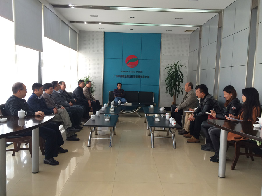 2015年1月21日,黄强所长等一行6人赴广西农垦糖业集团良圻制糖有限公司进行交流,并洽谈派4名科技人员到该公司锻炼学习事宜,期间受到了该公司董事长曹芳武、总经理黄耘等领导和相关部门负责人的热情接待。