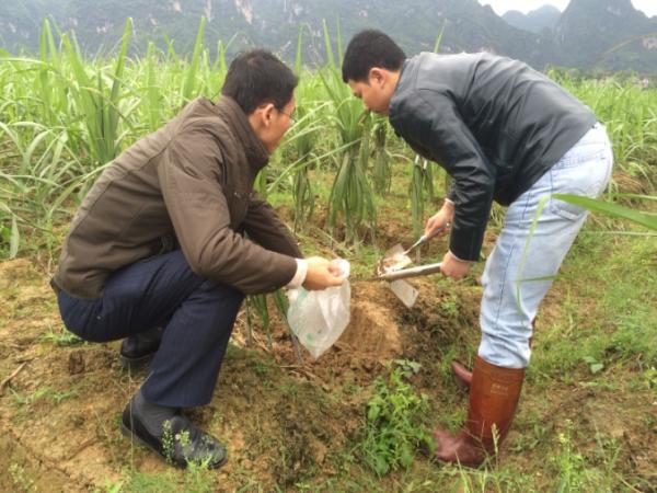 2015年3月24日至25日,受广西农业厅优农中心委托,农业部亚热带果品蔬菜检验监督测试中心派出技术人员到崇左市龙州县上龙乡的黑皮果蔗生产基地开展无公害农产品产地环境相关检测工作。科技人员查看土壤和灌溉水源状况,调查生产投入品情况,多点抽取土壤样品和水样品,对该基地申报无公害农产品产地环境认证进行检测。同时,向该基地种植户宣贯无公害农产品和无公害农产品产地环境的相关标准,并对无公害认证申报程序进行详细的指导。