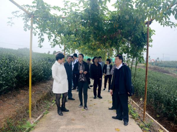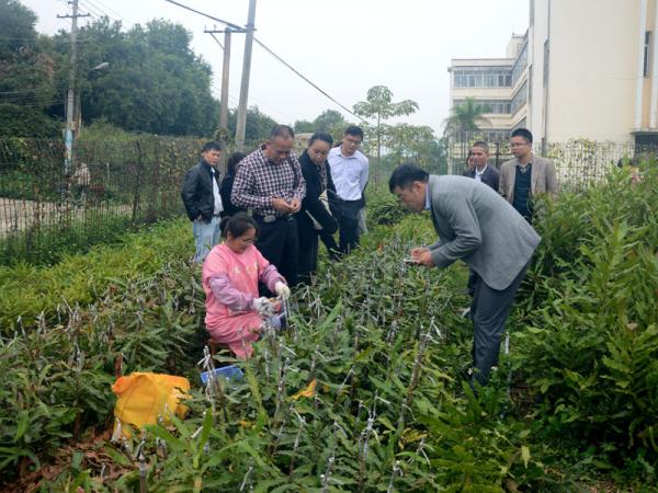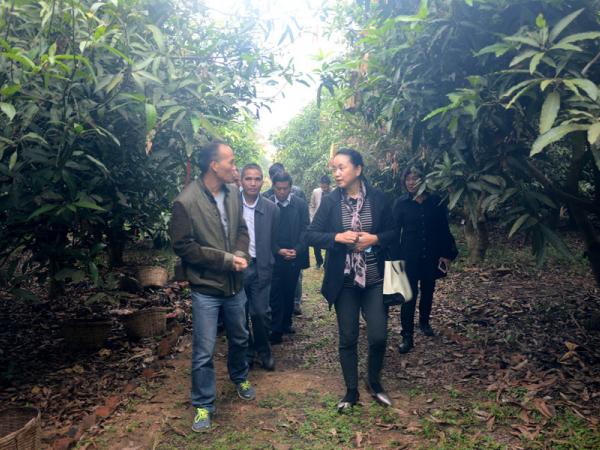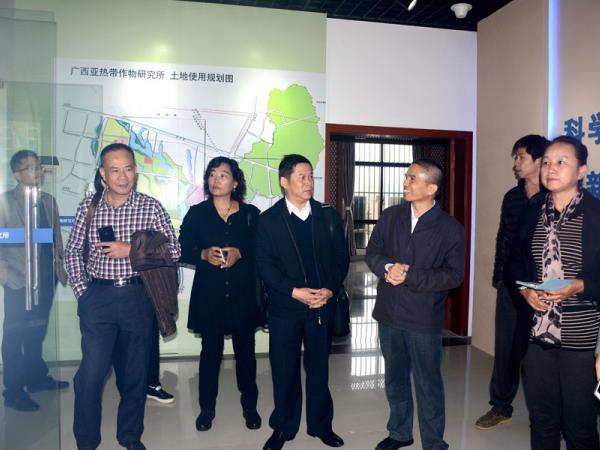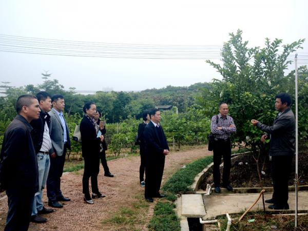陈振东、王友富、白燕冰一行17人参观了广西热作所新建的科技展厅,热作所办公室梁声侃主任为来宾介绍了热作所的发展历史、澳洲坚果、芒果、剑麻、木薯等作物的研究概况,为了让来宾更直观看到热作所的科研成果,庞新华主任引导来宾到都市生态茶园、澳洲坚果育苗基地、番石榴(杨桃)种质资源圃、芒果种质资源保护广西创新基地实地考察。来宾们对四季蜜芒及全红番石榴的生长特性进行了咨询,希望在种质资源的交流互换方面开展进一步合作。