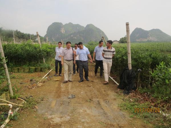 4月19日上午,在崇左市水果办副主任陆宜称的陪同下,广西热作所科技人员参观了崇左市江州区江州镇钟色昌种植户的澳洲坚果园,并就澳洲坚果的品种适应性、育苗和栽培管理等问题与其进行了交流。下午,在龙州县农业局坚果办副主任梁政福的陪同下,广西热作所科技人员参观了龙州县武德乡武德村逐安屯的澳洲坚果新品种引进试验区,双方就澳洲坚果的品种适应性、栽培管理和种植推广等问题进行了探讨。