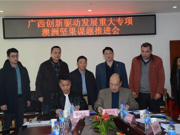 2018年2月9日,广西创新驱动发展专项“贫困地区木本粮油产业科技扶贫示范”澳洲坚果课题推进会在广西热作所举行。