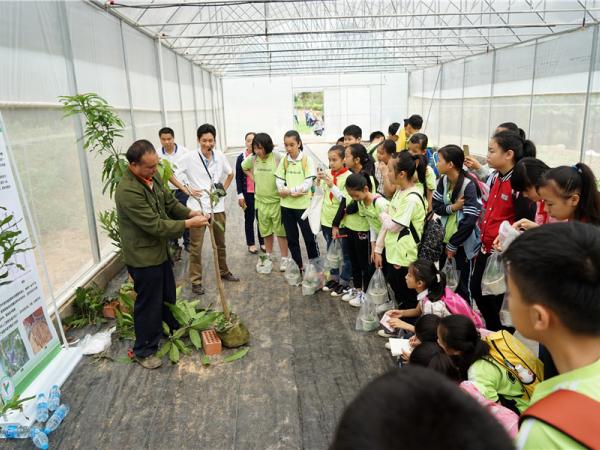 2018年4月28日,南宁市明秀东路小学五年级师生及家委会成员共200多人来到广西热作所亚热带植物科普园,开启了课外“研学课程”实践活动,共赴春天之约。