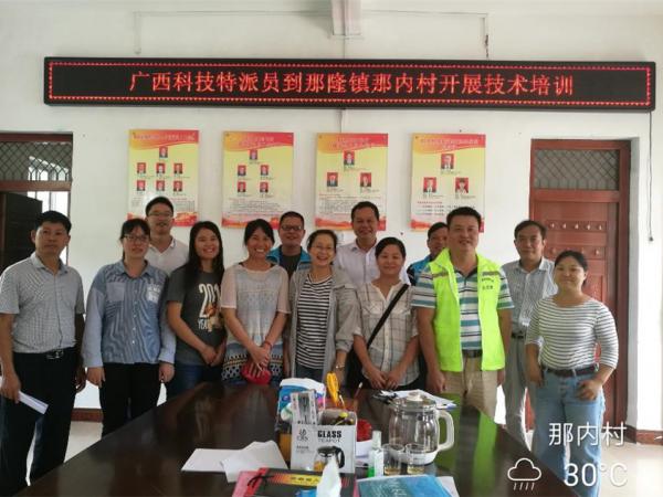 次日,热作所3名科技特派员还与广西水牛所方文远高级畜牧师,崇左市科技局周爱芳副主任,崇左市土肥站沈州焘、江州农技推广站黄兴杰高级农艺师,江州区科技局杨小利等人前往那隆镇那内村开展科技培训,为山区贫困村带去了砂仁种植技术培训和牛羊产业养殖技术培训,共培训农户47人次,现场指导了农户的砂仁育苗流程及注意事项。培训课深受农户欢迎。