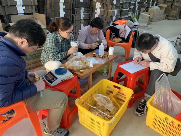 在融安县农业投资开发有限责任公司的金桔采后加工基地,项目负责人针对企业的生产和管理人员,开展了食品安全生产与金桔采后商品化处理操作规范培训。培训围绕食品生产经营个人卫生、包装及容器卫生、加工场所卫生、金桔采收和堆放及运送的注意事项等内容展开。期间热作所科技人员帮助企业管理人员将生产车间操作规程以文本的形式落到实处,项目组同时进行现场抽样,测定了经全自动分级、色选生产线处理后的金桔品质。