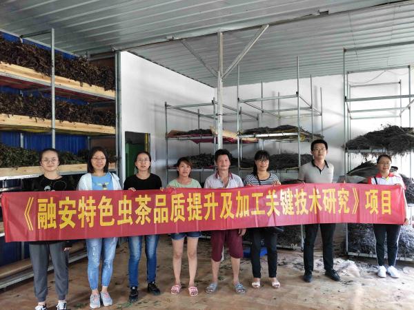 为推进广西重点研发项目“融安特色虫茶品质提升及加工关键技术”的项目实施,2020年8月5日-7日,广西热作所茶叶研究团队科技人员一行6人前往融安开展项目实施工作。