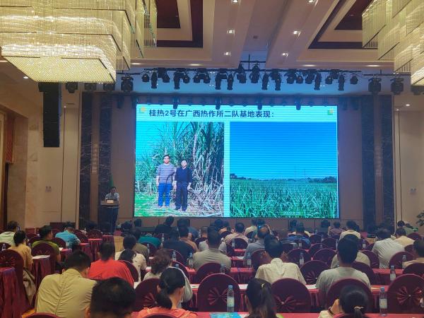 周全光在大会上作“甘蔗新品种桂热2号的选育及其种性研究报告”的报告,报告详细介绍广西农垦甘蔗研究所新选育甘蔗品种“桂热2号”的选育过程、栽培要点、优良性状。