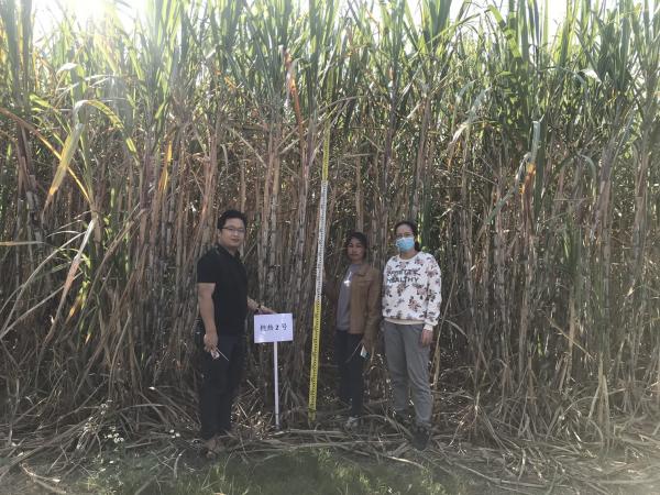 2020年11月12日,广西热作所科技人员一行3人前往来宾市调查自主选育的甘蔗优良新品种桂热2号的生长情况。