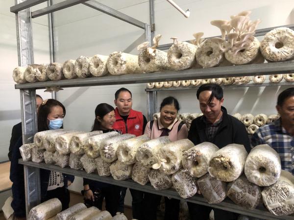 2021年11月26日,根据“广西农村科技服务云平台”发布木耳和平菇等食用菌的栽培、管理技术指导的需求,广西农业科学院热作所科技特派员谢红辉高级农艺师邀请微生物所书记、广西食用菌创新团队首席专家朗宁推广研究员,副所长、国家食用菌产业技术体系南宁综合试验站站长祁亮亮副研究员,广西食用菌创新团队功能专家吴圣进研究员等专家赴贵港市平南县上渡街道大乙岭社区扶贫产业基地育菌场(以下简称“育菌场)开展食用菌栽培和管理等技术指导服务。
