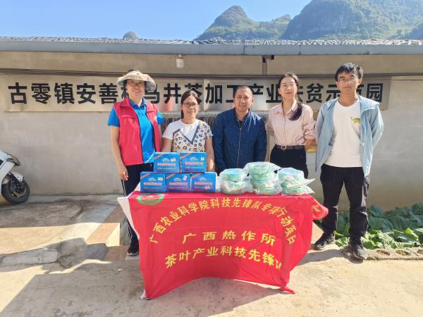 2022年10月13日,广西茶叶产业科技先锋队副队长彭靖茹一行4人赴广西南宁市马山县古零镇安善村马井茶加工产业扶贫示范园(以下简称“马井茶示范园”)开展科技服务。