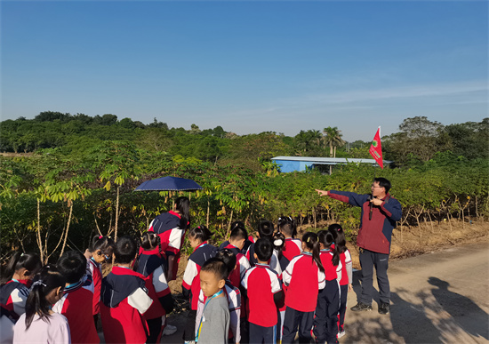 学生参观科研基地(木薯种质资源圃)