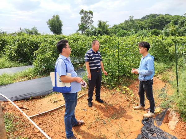 双方在参观广西热作所百香果种质资源圃期间,分别交流并介绍当地百香果的发展情况、本单位发展历程、项目进展、当地特色品种的应用、病虫害绿色防控等相关情况,就生产中的栽培管理技术要点、茎基腐病等病害的科学防治展开讨论,并围绕地方特色品种资源共享、联合开展科研项目申报、病虫害绿色防控、关键技术联合攻关等方面进行交流,初步达成以促进百香果产业绿色发展为导向,合作开展科学研究的共识。双方希望,依托双方的现有资源和研究基础,进一步加强种质资源、高产栽培技术方面的交流,开展百香果高产栽培、茎基腐病绿色防控等关键技术的联合攻关,为产业解决实际困难,多方联动同频共振,共同推动我国百香果产业向更高水平、更高质量方向稳健发展。