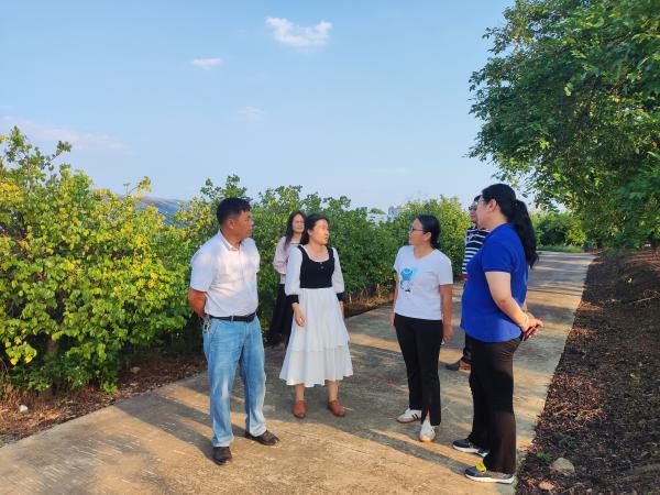 在杨桃种质资源圃,陈豪军向高玲介绍圃内保存种质资源、新品种研发、品种保护等情况,高玲对广西热作所在植物资源收集保存利用方面的工作业绩表示赞赏,并向科技人员讲解植物新品种保护相关法律法规、品种权申请实务、DUS测试等相关内容,解答科技人员在新品种权申请过程中遇到的实际问题。