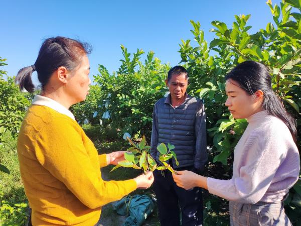期间,先锋队队员到北流市新圩镇河村番石榴基地查看番石榴病株,为种植户提供解决思路。