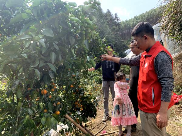 在荔浦市农业农村局工作人员陪同下,团队成员深入果园实地调查了解砂糖桔在低温气候条件下树势生长及生产过程主要病虫害、农药使用及管理模式等情况,针对近期降温冰冻天气,团队成员提出基地负责人应在寒潮来临前,尽可能采收已经成熟的砂糖桔,避免果实受冻,寒潮过后,可以使用多元素叶面肥喷施,促进树体恢复,冻后易发生炭疽病、树脂病等病害,应及时做好预防,同时,加强对柑橘木虱和黄龙病的联防联控,防止病虫害的暴发。