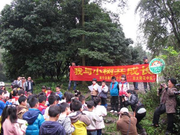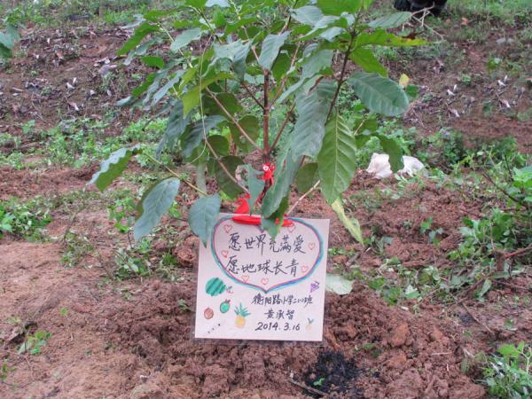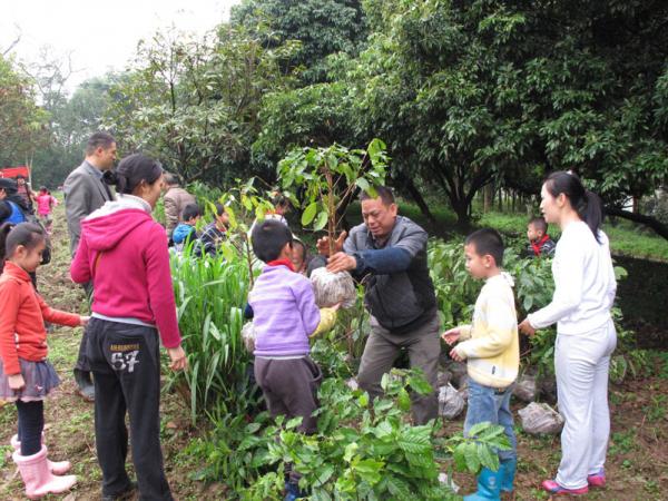 2014年3月15日,南宁市衡阳路小学二年级(1)班50多位小学生由家长、老师陪同,到科普园进行“我与小树共成长”亲子植树活动。学生、家长们经过技术人员的指导,种下100多株咖啡树,挂上了认养牌,并将他们的咖啡园命名为“太阳花乐园”。