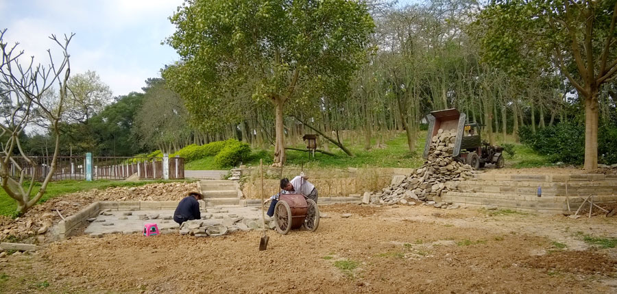 一年之计在于春,春节假期过后,热作所科普园开展新一轮的基础设施建设,节后即进行四角凉亭观景平台建设。该平台占地约300平方米,位于棕榈区北部小山丘上,地势较高,原有四角凉亭1座,视野开阔,风景优美,建成后还可作为集散广场、团队游戏场地使用。该观景平台年前已完成场地平整,目前正进行铺设六角砖硬化工作。