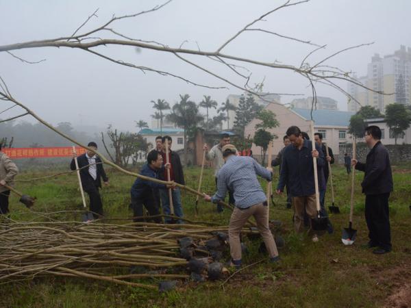 3月27日上午,广西热作所与自治区移民局在热作所居民生活区新规划的文化广场开展植树活动,热作所所长黄强、自治区移民局局长沈永明参加了活动,来自2个单位的240多名职工参与了植树活动,为建设美丽南宁再添一抹新绿。