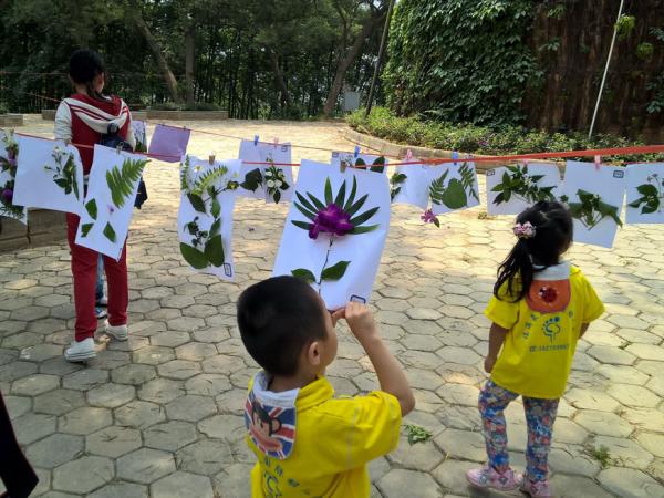孩子们还在科普广场进行树叶贴画比赛,在园内现场采集各种树叶、野花作为素材,巧妙的构思在稚嫩的小手下,化成一幅幅美丽的图画。通过这一系列活动,锻炼了他们的动手能力,激发他们亲近大自然、探索大自然的欲望,培养环保意识。
