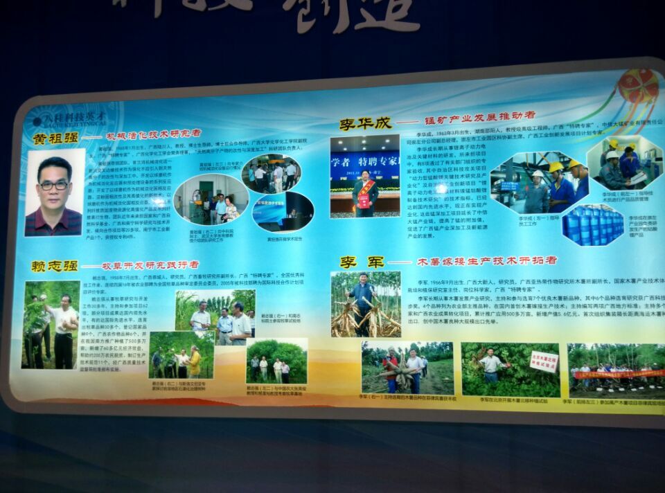 据悉,“科技梦·中国梦-中国现代科学家主题展”是由中国科协办公厅、教育部办公厅等8部门联合举办的全国巡展活动,并于2015年5月16~6月1日在广西科技馆举办。期间,自治区党委组织部、文明办、人社厅、科技厅、科协等单位同期同地点举办“科技梦·中国梦——八桂科技英才风采展”,展出我区近百位优秀科技工作者代表的先进事迹和优秀风采。国家现代农业产业体系岗位科学家、广西首批特聘岗位专家、广西亚热带作物研究所研究员、广西木薯研究所副所长李军入选八桂科技英才名录,展示先进事迹和优秀风采,而且其先进事迹通过由广西科技厅和广西电视台联袂打造的宣传科技创新的科技电视专题栏目《创新传奇》里播出后家喻户晓。
