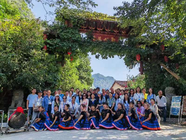 在南丹疗休养基地,职工们游览全国特色村寨建设的典范瑶王寨,体验瑶族传统民俗文化;登顶丹炉山,感受玻璃栈道上脚踏祥云的惊险与刺激;融入当地人文,品尝的极具特色的美食簸箕菜,还前往瑶村党史广场开展党史学习活动。