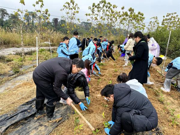 2月26日,广西热作所科研第四党支部联合南宁市明天学校党总支在广西热作所茶叶种质资源圃开展“青春心向党 植树写未来”主题党日活动,两个支部共30余名党员和学生参加。