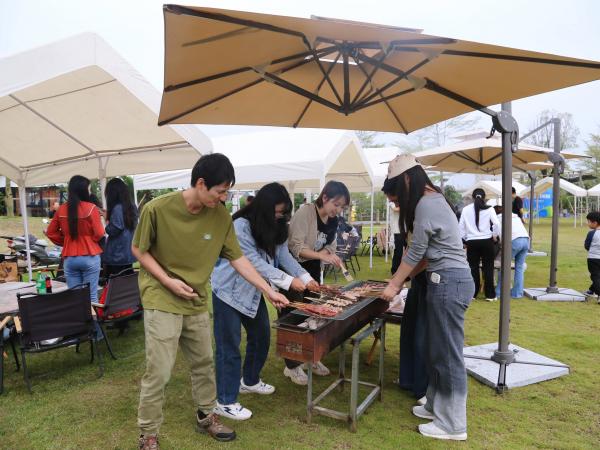 活动在青翠开阔的大草坪上展开,现场烟火升腾、欢声笑语不断。同事们分工有序,默契配合,生火、调酱、翻烤各司其职,香气四溢的烧烤环节迅速拉近了彼此距离,现场洋溢着浓浓的“职工之家”的温暖与活力。