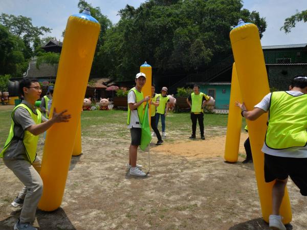 素质拓展训练设置了“团队形象展示”“合力筑塔”“不倒森林”“车轮滚滚”等比拼项目。在“团队形象展示”项目中,4个参赛队给自己起队名、画队旗、列队形,同时喊出响亮的队伍口号。在“合力筑塔”“不倒森林”“车轮滚滚”项目中,参赛队员相互配合、克服困难,按照比赛规则迅速完成规定动作。充分展现了青年团员顽强拼搏、积极向上的精神风貌。