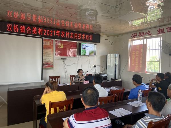 2021年7月14日,由南宁市武鸣区扶贫开发领导小组办公室及武鸣区双桥镇合美村民委员会联合主办的双桥镇合美村2021年农民实用技术培训班顺利召开,共80名农户参加培训,广西热作所驻派武鸣区科技特派员覃茜受邀参加此次培训班授课。