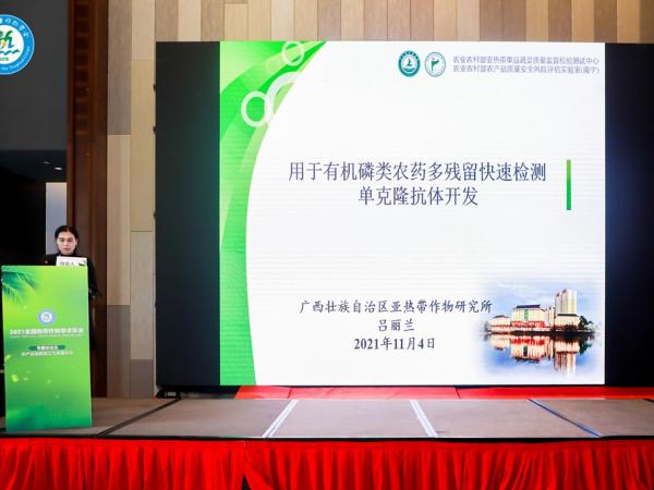 11月4日,召开分会场特邀报告会议,会议共设七个分会场,广西热带作物学会、中国热带作物学会农产品加工专业委员会以及科技推广咨询工作委员会联合承办了第五分会场,由农产品加工专业委员会周伟副研究员、广西热作所吕丽兰高级实验师主持,共有72人参会。17名专家、学者分别就“农产品储藏加工与质量安全”为主题作了精彩的学术报告。其中,广西热作所陈涛高级农艺师作了“剑麻轻简化加工及废弃物资源化利用研究报告”报告、甘志勇正高级实验师作了“广西富硒农产品质量安全风险评估及产业问题”报告、吕丽兰高级实验师作了“用于有机磷类农药多残留快速检测单克隆抗体的开发”报告。其余报告涉及到荔枝、槟榔、菠萝蜜、芒果、椰子汁、香蕉、饲用杂交构树等多方面研究领域,内容丰富多彩。