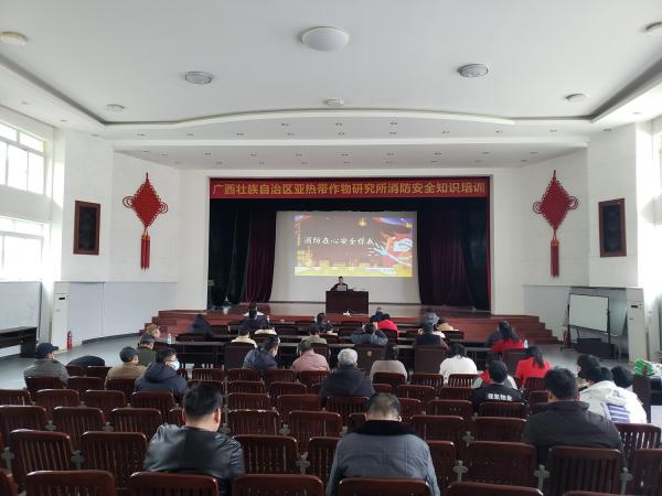 广西热作所邀请南宁市金桥消防救援站高级教官叶华雄到所部礼堂开展主题为“消防在心安全你我”的消防安全专题知识讲座。叶华雄以办公场所消防安全、家庭消防安全、车辆充电安全等生活中常见的消防安全隐患为例,围绕预防火灾、扑灭火灾、应急逃生、火灾急救处理知识等内容展开生动细致的讲解。