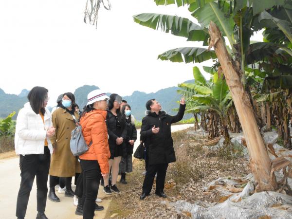 韦绍龙一行先后实地考察了桂蕉9号、宝岛蕉、火龙果的受寒害情况,韦绍龙在考察时提出桂蕉9号作为广西本土品种比宝岛蕉更适合本地种植,且适应力较强,因此受寒害情况较为乐观。此外,还对防病害、防低温、水肥管理等方面提出建议,确保香蕉和火龙果能安全度过此次寒潮。