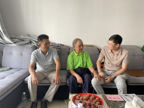 2022年7月1日,在庆祝建党101周年之际,广西农业科学院院长助理黄强到热作所慰问在党50年(以上)老党员张瑞芬、雷道才两位同志。同时,广西热作所党委也开展了“七一”走访慰问活动,所党委书记池昭锦、副所长庞新华、梁声侃及所党委委员分组带队分别走访慰问热作所19名老党员,向他们致以诚挚的问候和节日的祝福。