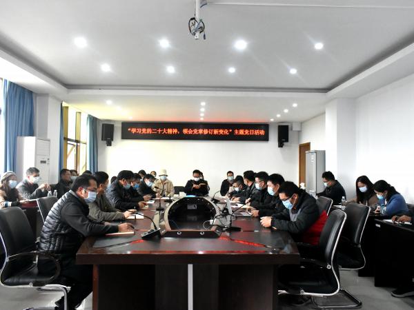 所党委书记池昭锦同志以“贯彻党的二十大精神,深刻领会新修订党章”为题给两个支部同志上了一堂生动的党课,他谈到,全体党员同志要全面了解党章的基本结构、修改历史、主要内容,要增强学习贯彻党的创新理论的思想自觉、政治自觉、行动自觉,把党的二十大精神贯彻落实到实际工作之中。