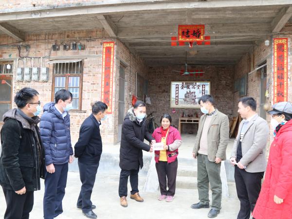 春节将至,暖意先行。为持续深入学习贯彻宣传党的二十大精神,2023年1月16日,广西农业科学院院长助理、广西热作所所长韦绍龙,副所长庞新华、李军和其他党委委员赴兴业县卖酒镇卖酒村开展春节走访慰问活动,给5户脱贫户和11名村委工作人员送上慰问金和诚挚的节日问候。