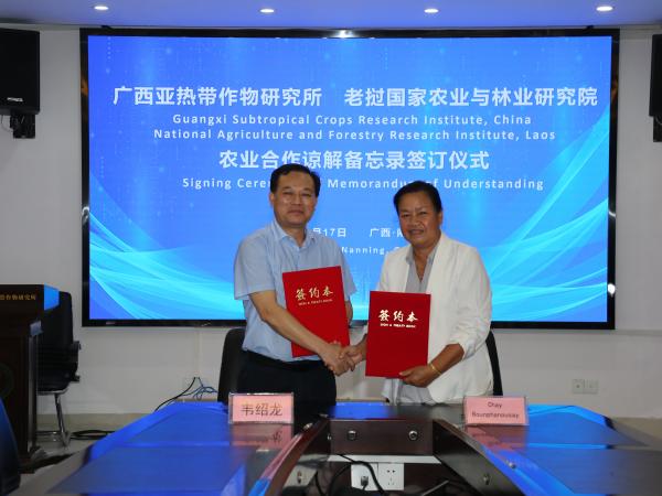 访问期间,双方签订了国际农业合作谅解备忘录。备忘录约定,双方将积极响应“一带一路”倡议,在平等和互利互惠的基础上,围绕热带、亚热带作物(木薯、芒果、澳洲坚果、番木瓜、菠萝蜜、甘蔗)领域开展种质资源交换、技术交流、新品种选育与推广等方面的研究。Chay Bounphanousay表示,希望备忘录的签署能为中老双方进一步加强热带、亚热带农业合作机制,深化农业科技交流,从而提高老挝的农业科技创新水平,为老挝农业可持续发展带来新的发展机遇。