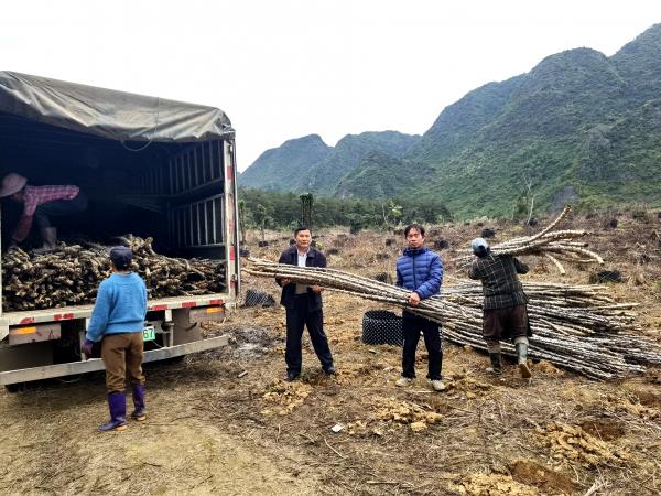 2024年3月6日,国家乡村振兴重点帮扶县广西都安科技特派团团长、广西热作所副所长李军带领团队成员及都安“一县一团”乡村科技特派员20多人,到都安瑶族自治县地苏镇青水村向种植大户赠送优良木薯新品种种茎并开展技术指导服务。