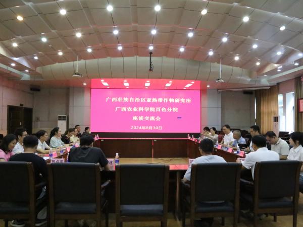 2024年8月30日,广西热作所党委副书记、所长陈赶林,党委副书记梁声侃一行10人到广西农业科学院百色分院开展科技合作交流活动。百色分院党总支书记、院长韦爱琳,副院长岑积仁、罗芳媚等人陪同交流。