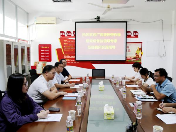 9月12日,广西热作所党委副书记、所长陈赶林一行7人到海南省农业科学院热带果树研究所进行调研交流,海南省农业科学院热带果树研究所副所长胡福初、海南省农业科学院科技处副处长范鸿雁及相关人员陪同交流。