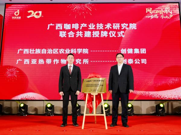 活动现场,陈赶林代表广西热作所与创健集团董事长梁雄,共同为广西咖啡产业技术研究院揭牌,这标志着广西热作所与创健集团在咖啡产业技术研发方面将展开更为深度的合作,双方将以此次活动为新的起点,携手共进,共同书写广西咖啡产业发展的新篇章。