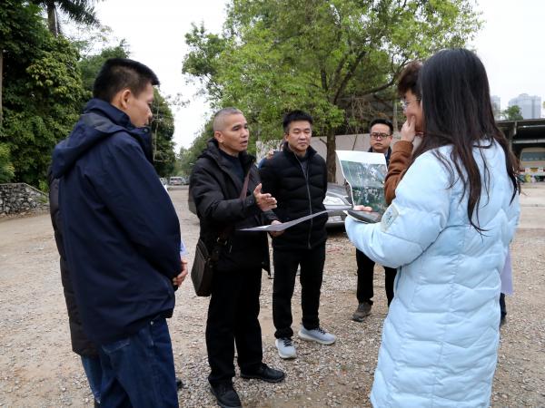 广西热作所副书记梁声侃,副所长覃剑峰,土地与基地管理办公室、后勤服务中心、所办公室相关负责人,以及土地设计规划施工方人员。各方齐聚建设现场,以实地考察结合深入讨论的方式,针对项目推进展开全面部署。