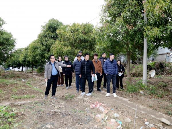 在建设现场,梁声侃从宏观布局与细节把控两方面进行工作安排。他着重强调要合理规划道路、水管、电网、种植区布局,依据不同果树品种的生长习性,合理规划种植区域,最大化利用土地资源,同时保障果树生长有充足的空间与适宜的环境。覃剑峰强调要加快设计进度,尽快确定设计方案,避免因设计延误导致整个项目周期延长。覃剑峰还带领参会人员进行实地调研,结合土地的地形地貌、土壤条件等因素,现场定点安排果树种植。
